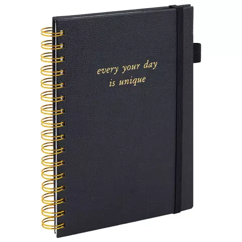 Ежедневник недатированный с резинкой А5 145х203мм, BRAUBERG, твердый, черный, 160л, Minimal, 116299
