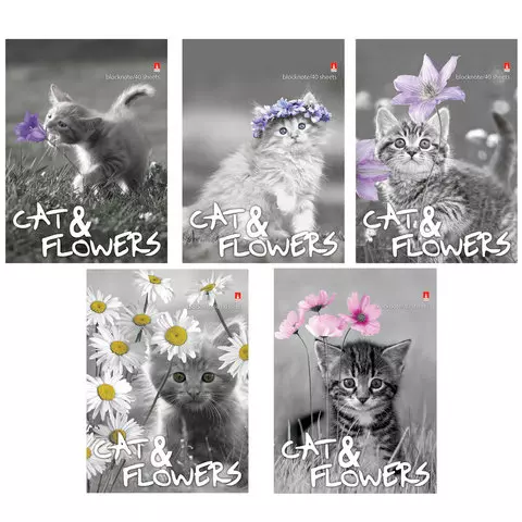 Блокнот А6, 40 л., гребень, ламинированный картон, клетка, Альт, "Котята", (5 видов), 3-40-028