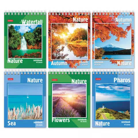 Блокнот МАЛЫЙ ФОРМАТ (110х145 мм) А6, 40 л., гребень, лакированная обложка, клетка, HATBER, "Пейзажи", 40Б6B1гр, В12307