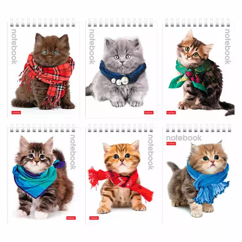 Блокнот МАЛЫЙ ФОРМАТ (110х145 мм) А6, 40 л., гребень, лакированная обложка, клетка, HATBER, "Котята", 40Б6B1гр, В12291