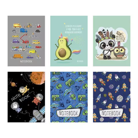 Блокнот МАЛЫЙ ФОРМАТ (75x105 мм), А7, 40 л., гребень, фольга, TWIN лак, клетка, "МИКС 5" (6 видов), 099104