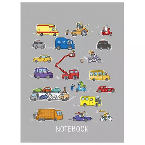 Блокнот МАЛЫЙ ФОРМАТ (110х145 мм) А6, 40 л., гребень, лакированная обложка, клетка, HATBER, "Машины", 40Б6B1гр, В12284