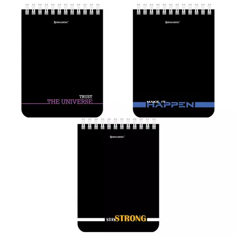 Блокнот МАЛЫЙ ФОРМАТ (108х145 мм) А6, 40 л., гребень, картон, клетка, BRAUBERG, "Black & notes", 114389