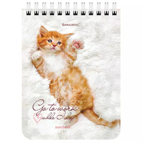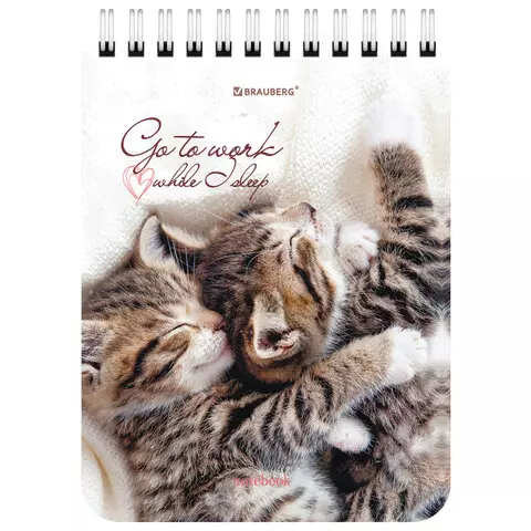 Блокнот МАЛЫЙ ФОРМАТ (108х145 мм) А6, 40 л., гребень, картон, клетка, BRAUBERG, "Милые котята", 114391