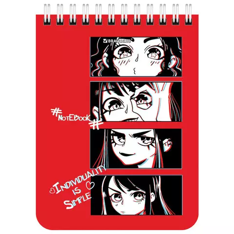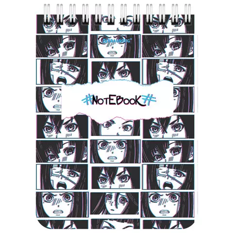 Блокнот МАЛЫЙ ФОРМАТ (108х145 мм) А6, 40 л., гребень, картон, клетка, BRAUBERG, "Anime emotions", 114392