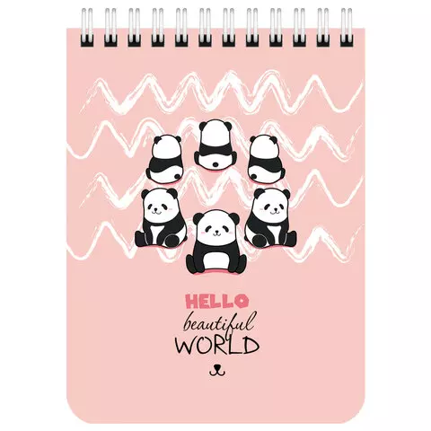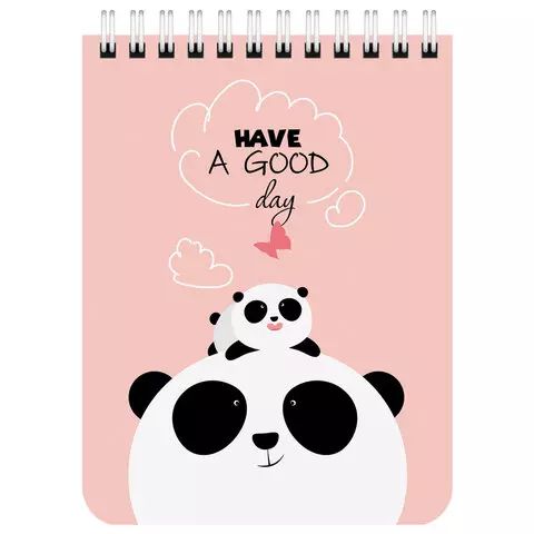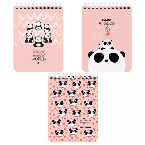 Блокнот МАЛЫЙ ФОРМАТ (108х145 мм) А6, 40 л., гребень, картон, клетка, BRAUBERG KIDS, "Панды", 114393