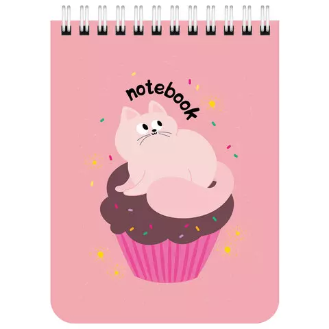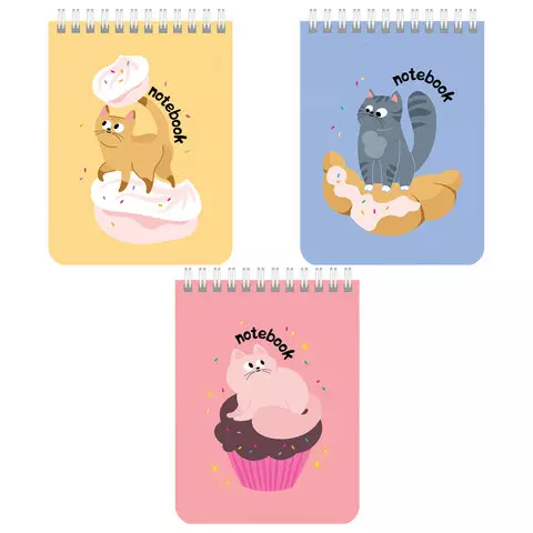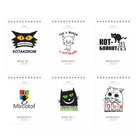 Блокнот МАЛЫЙ ФОРМАТ А6, 40 л., гребень, картон, клетка, HATBER, "Муркомания", 090640, 40Б6В1гр