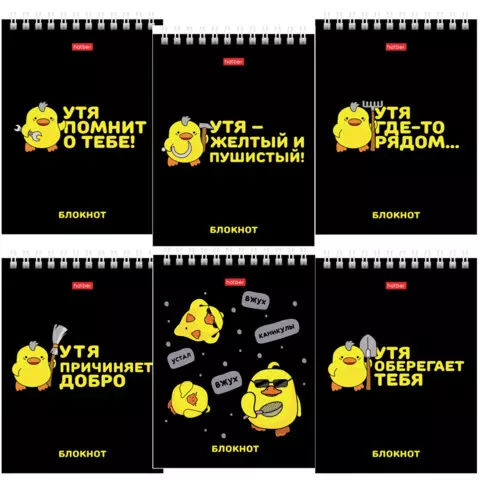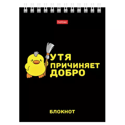 Блокнот МАЛЫЙ ФОРМАТ А6, 40 л., гребень, картон, клетка, HATBER, "УтяКря", 079618, 40Б6В1гр