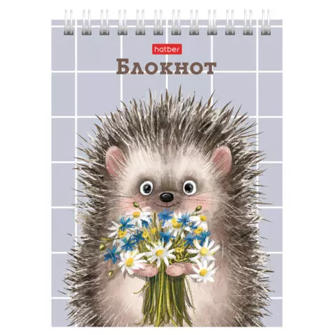 Блокнот МАЛЫЙ ФОРМАТ А6, 40 л., гребень, картон, клетка, HATBER, "Хорошо быть ёжиком", 080472, 40Б6В1гр