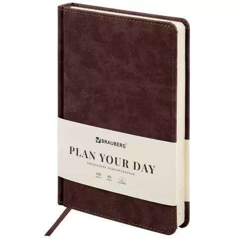 Ежедневник недатированный А5 138х213 мм BRAUBERG "Status", под кожу, 160 л., коричневый, 113363