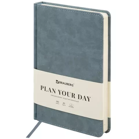 Ежедневник недатированный А5 138х213 мм BRAUBERG "Status", под кожу, 160 л., серо-голубой, 113365