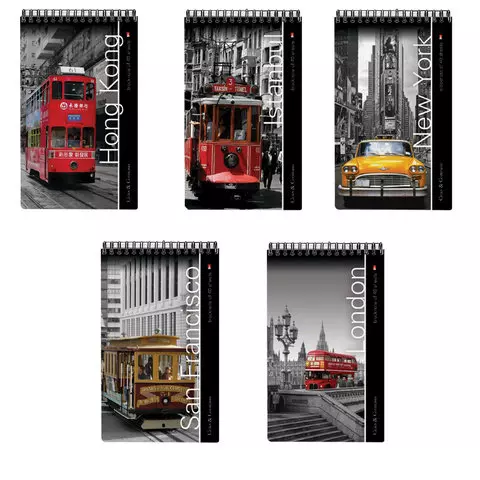 Блокнот А5, 40 л., гребень, ламинированный картон, клетка, Альт, "Города", (5 видов), 3-40-463