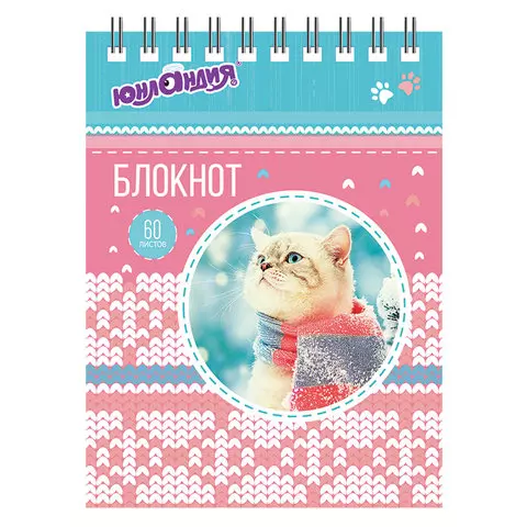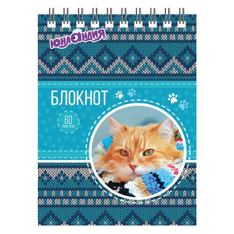 Блокнот МАЛЫЙ ФОРМАТ (108х146 мм) А6, 60 л., гребень, картон, клетка, ЮНЛАНДИЯ, "КОТИКИ", 129831