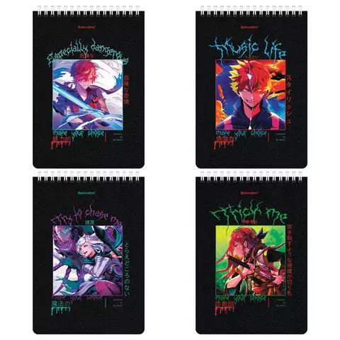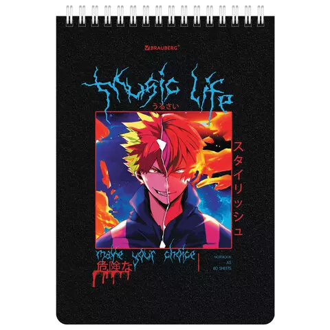 Блокнот А5 (146х206 мм), 80 л., гребень, картон, клетка, BRAUBERG, "Аниме", 114375