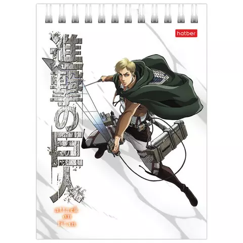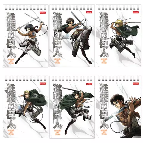 Блокнот МАЛЫЙ ФОРМАТ А6 110х145 мм, 40 л., гребень, лакированный, клетка, HATBER "Атака Титанов", 40Б6В1гр