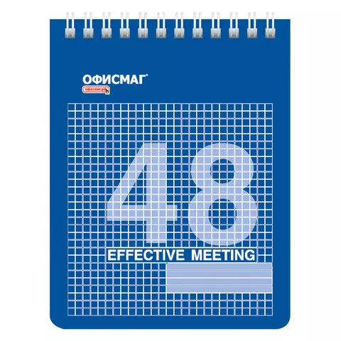 Блокнот МАЛЫЙ ФОРМАТ А6 108х146 мм, 48 л., гребень, картон, клетка, ОФИСМАГ, синий, 129870