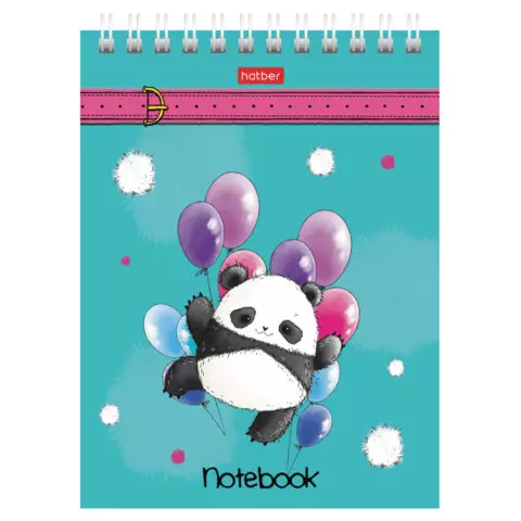 Блокнот МАЛЫЙ ФОРМАТ А6, 60 л., гребень, картон, клетка, HATBER, "Плюшевые панды", 088304, 60Б6В1гр