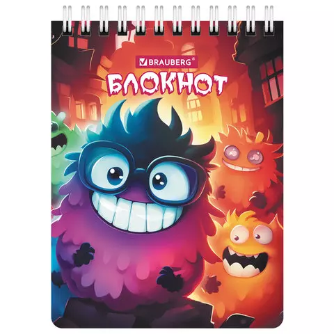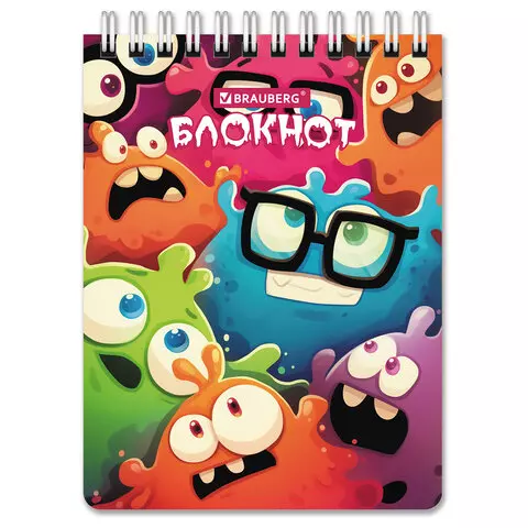Блокнот МАЛЫЙ ФОРМАТ А6 97х145мм, 60л, гребень, картон, клетка, BRAUBERG МОНСТРИКИ, 116997