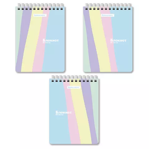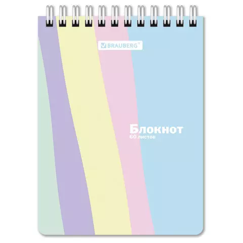 Блокнот МАЛЫЙ ФОРМАТ А6 97х145мм, 60л, гребень, картон, клетка, BRAUBERG, PASTEL, 117033