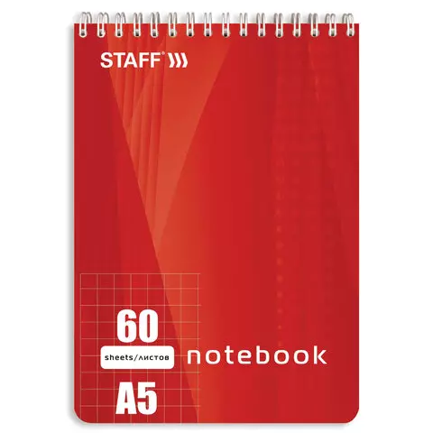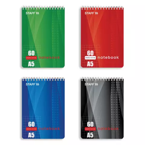 Блокнот А5 (146х205 мм), 60 л., гребень, жесткая подложка, клетка, STAFF, 4 вида, 126539