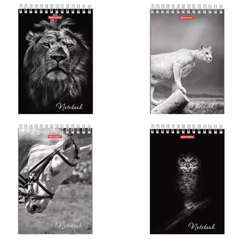 Блокнот А5 (146х205 мм), 60 л., гребень, картон, жесткая подложка, клетка, BRAUBERG, "Животные", 129810