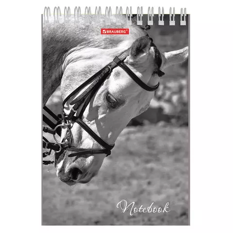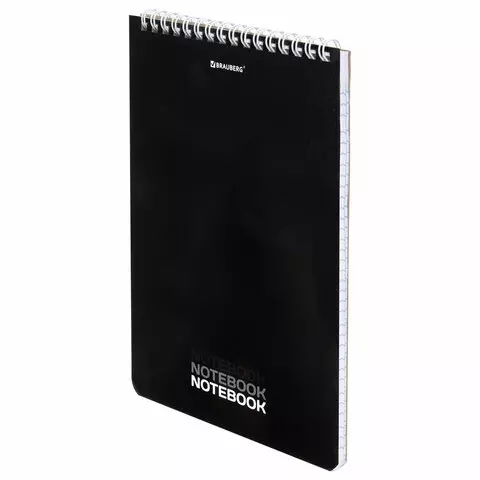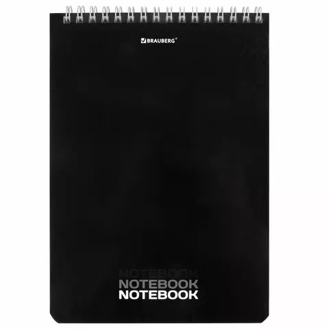 Блокнот А5 (146х206 мм), 60 л., гребень, картон, жесткая подложка, клетка, BRAUBERG, "Black", 114365