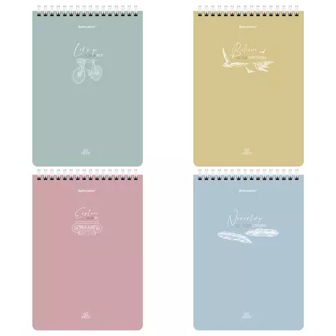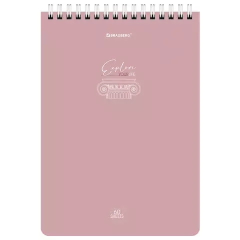 Блокнот А5 146х206мм, 60л, гребень, картон, жест подложка, клетка, BRAUBERG Minimal Pastel, 116427