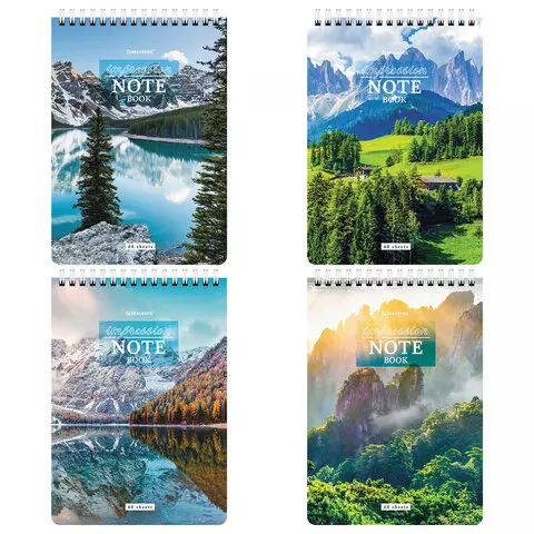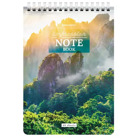 Блокнот А5 (146х206 мм), 60 л., гребень, картон, жесткая подложка, клетка, BRAUBERG, "Горные пейзажи", 114367