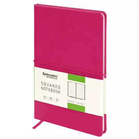 Блокнот в клетку с резинкой А5 (148x218 мм), 80 л., под кожу малиновый BRAUBERG "Metropolis X", 111034