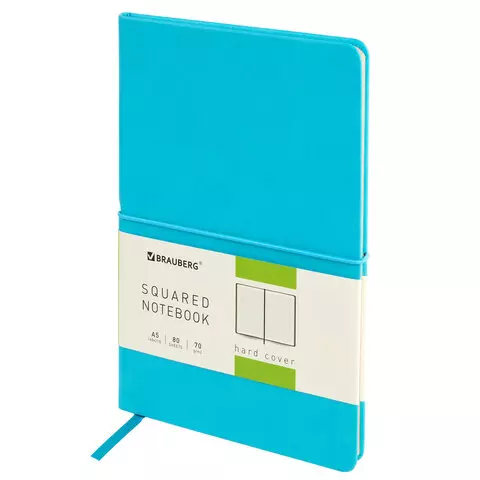 Блокнот в клетку с резинкой А5 (148x218 мм), 80 л., под кожу бирюзовый BRAUBERG "Metropolis X", 111035