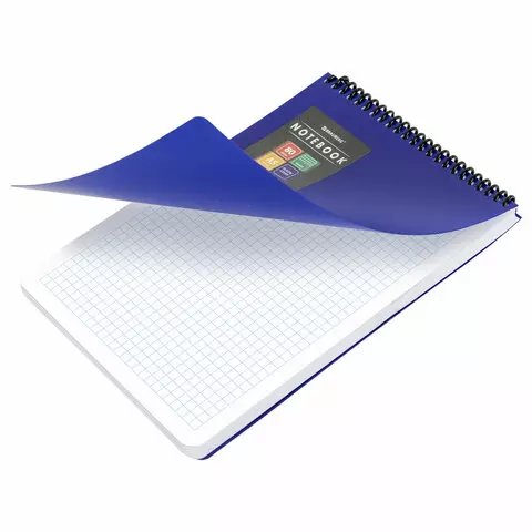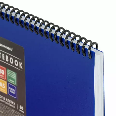 Блокнот А5 80л, спираль пластиковая, обложка пластик, клетка, BRAUBERG Metropolis, СИНИЙ, 115569