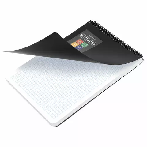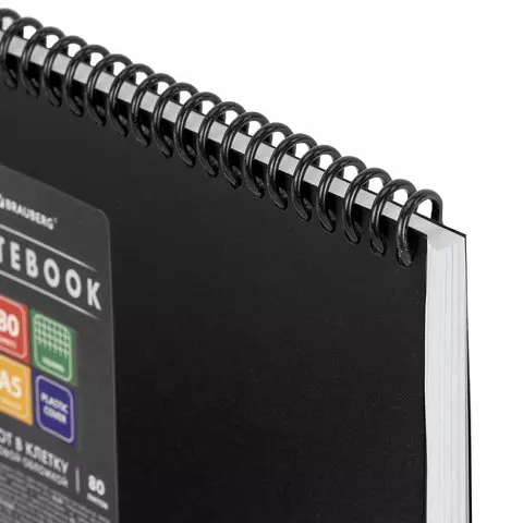 Блокнот А5 80л, спираль пластиковая, обложка пластик, клетка, BRAUBERG Metropolis, ЧЕРНЫЙ, 115572