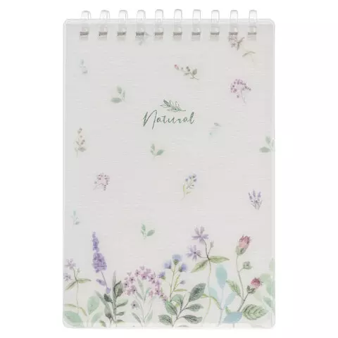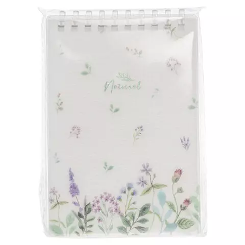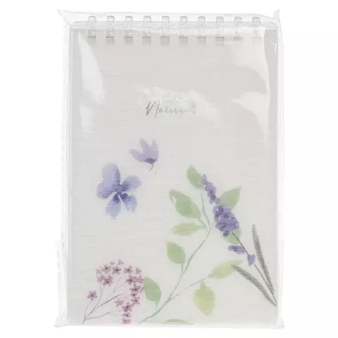 Блокнот МАЛЫЙ ФОРМАТ А6 80 л., мягкий гребень, пластик, фольга, клетка, HATBER, NATURAL FLOWERS, 090108, 80Б6A1мс_33479