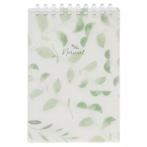 Блокнот МАЛЫЙ ФОРМАТ А6 80 л., мягкий гребень, пластик, фольга, клетка, HATBER, NATURAL LEAVES, 090242, 80Б6A1мс_33480
