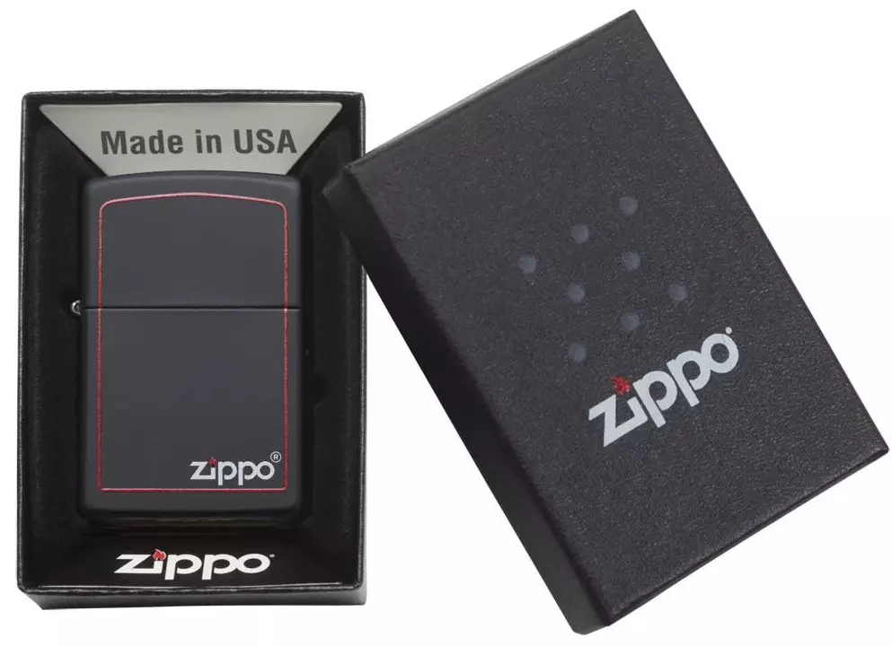 Зажигалка ZIPPO Classic с покрытием Black Matte, латунь/сталь, чёрная с фирменным логотипом и красной окантовкой, матовая, 36x12x56 мм