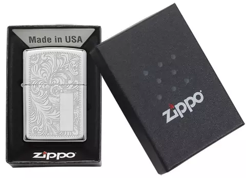 Зажигалка ZIPPO Venetian® с покрытием High Polish Chrome, латунь/сталь, серебристая, глянцевая, 36x12x56 мм