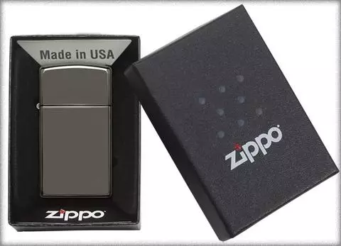 Зажигалка ZIPPO Slim® с покрытием Black Ice ®, латунь/сталь, чёрная, матовая, 30x10x55 мм
