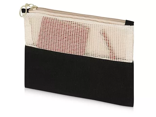 Вместительная хлопковая косметичка на молнии с сетчатой вставкой удобна для хранения личных вещей, косметики и гигиенический принадлежностей дома или в путешествии.