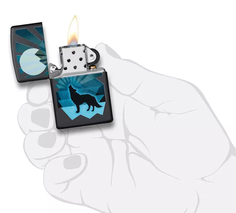 Зажигалка ZIPPO Wolf and Moon Design с покрытием Black Matte, латунь/сталь, чёрная, матовая, 36x12x56 мм