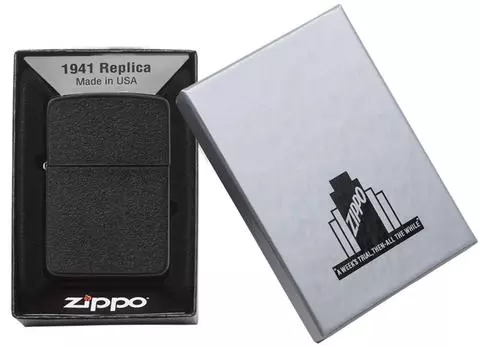 Зажигалка ZIPPO 1941 Replica, латунь с покрытием Black Crackle, черный, матовая, 36х12x56 мм