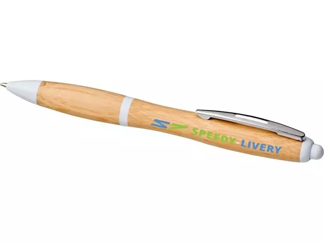 Шариковая ручка Nash из бамбука. Экологически чистая кнопочная шариковая ручка с корпусом из бамбука, хромированным зажимом и отделкой из АБС-пластика. Цвет бамбукового материала может отличаться. Бамбук, АБС-пластик.