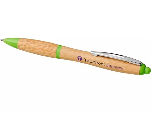 Шариковая ручка Nash из бамбука. Экологически чистая кнопочная шариковая ручка с корпусом из бамбука, хромированным зажимом и отделкой из АБС-пластика. Цвет бамбукового материала может отличаться. Бамбук, АБС-пластик.