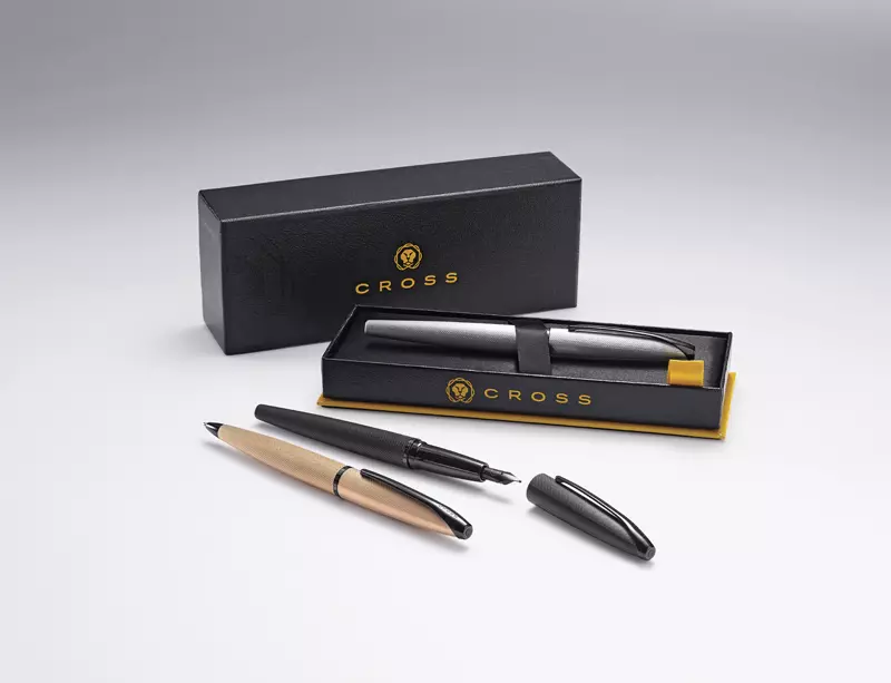 Перьевая ручка Cross ATX Brushed Rose Gold PVD, латунь, PVD напыление - розовое золото, гравировка, детали дизайна - полированное покрытие черного цвета, перо F - нержавеющая сталь с PVD напылением розовое золото