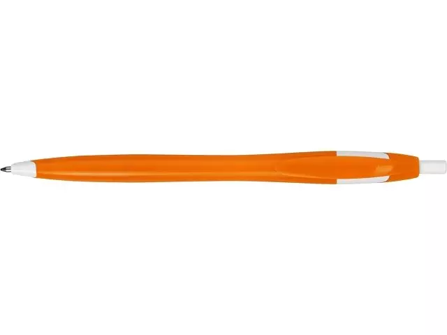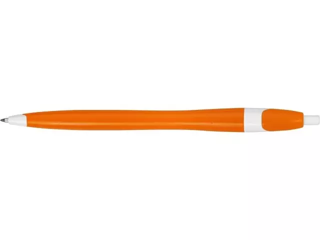 Простая, но стильная пластиковая ручка с цветным корпусом и белыми вставками на носике, кнопке и под клипом. Белые вставки делают ручку более заметной, не отвлекая от рекламной информации на ее корпусе.
