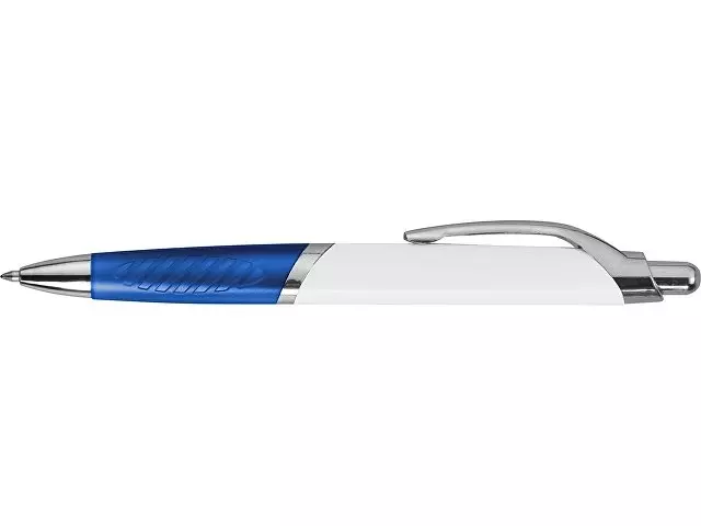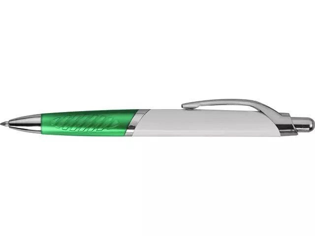 Надежная шариковая ручка с белым корпусом и цветной вставкой. Нажимной механизм, оригинальная форма клипа. Будет хорошим промосувениром для вашей компании. На пластиковый корпус возможно нанесение методом тампопечати.