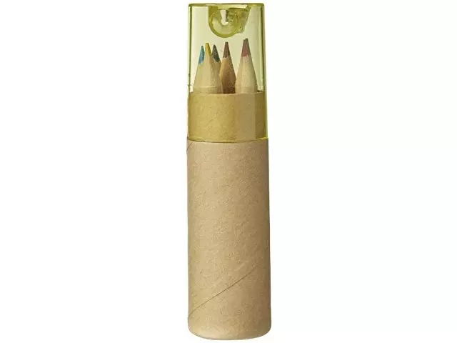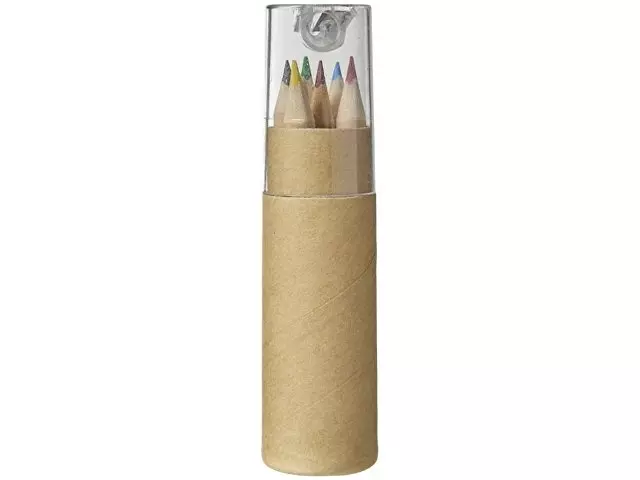 Набор содержит 6 цветных карандашей и футляр с крышкой-точилкой. Отличный вариант для создания оригинального промосувенира. Крышка позволит аккуратно собрать стружку в процессе подтачивания карандашей.