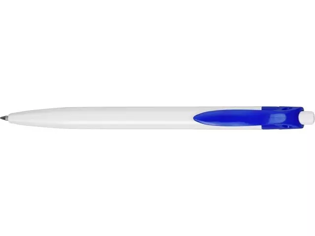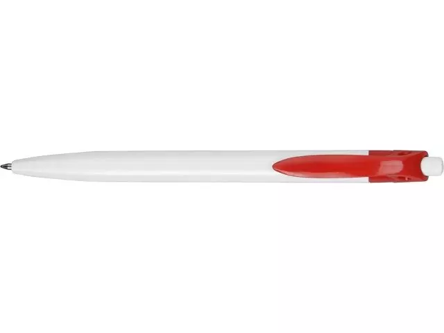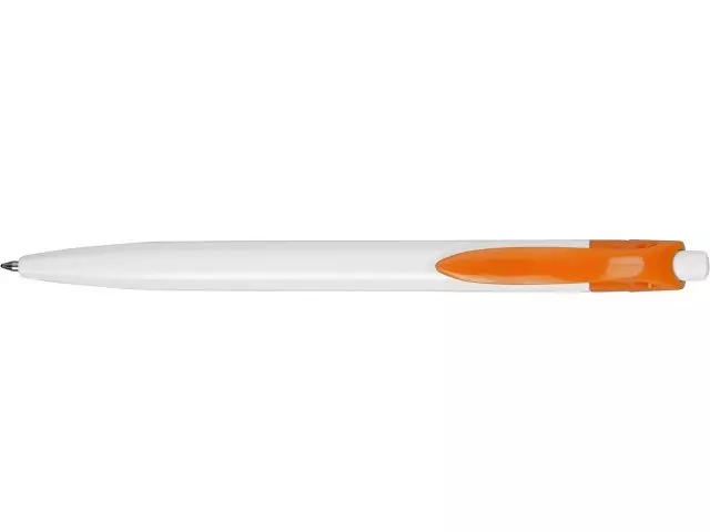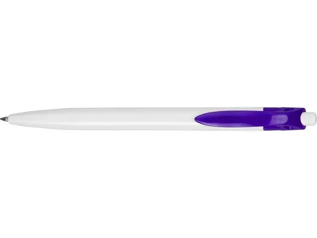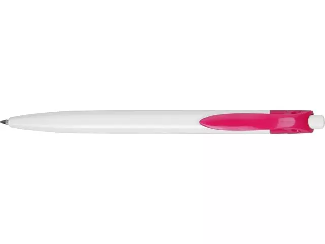 Стильная пластиковая ручка с ярким цветным клипом и белым корпусом отлично подойдет для нанесения логотипов и рекламной информации. Нажимной механизм.