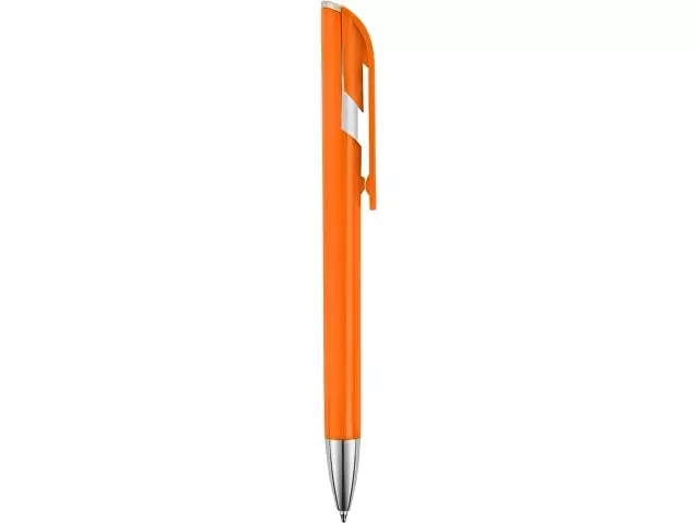 Пластиковая ручка с цветным корпусом и серебристым носиком привлечет внимание своим необычным дизайном: при нажатии на кнопку двигается только часть клипа, а вторая – остается на месте. Из шести расцветок можно выбрать ту, что наилучшим образом подойдет к вашим фирменным цветам.