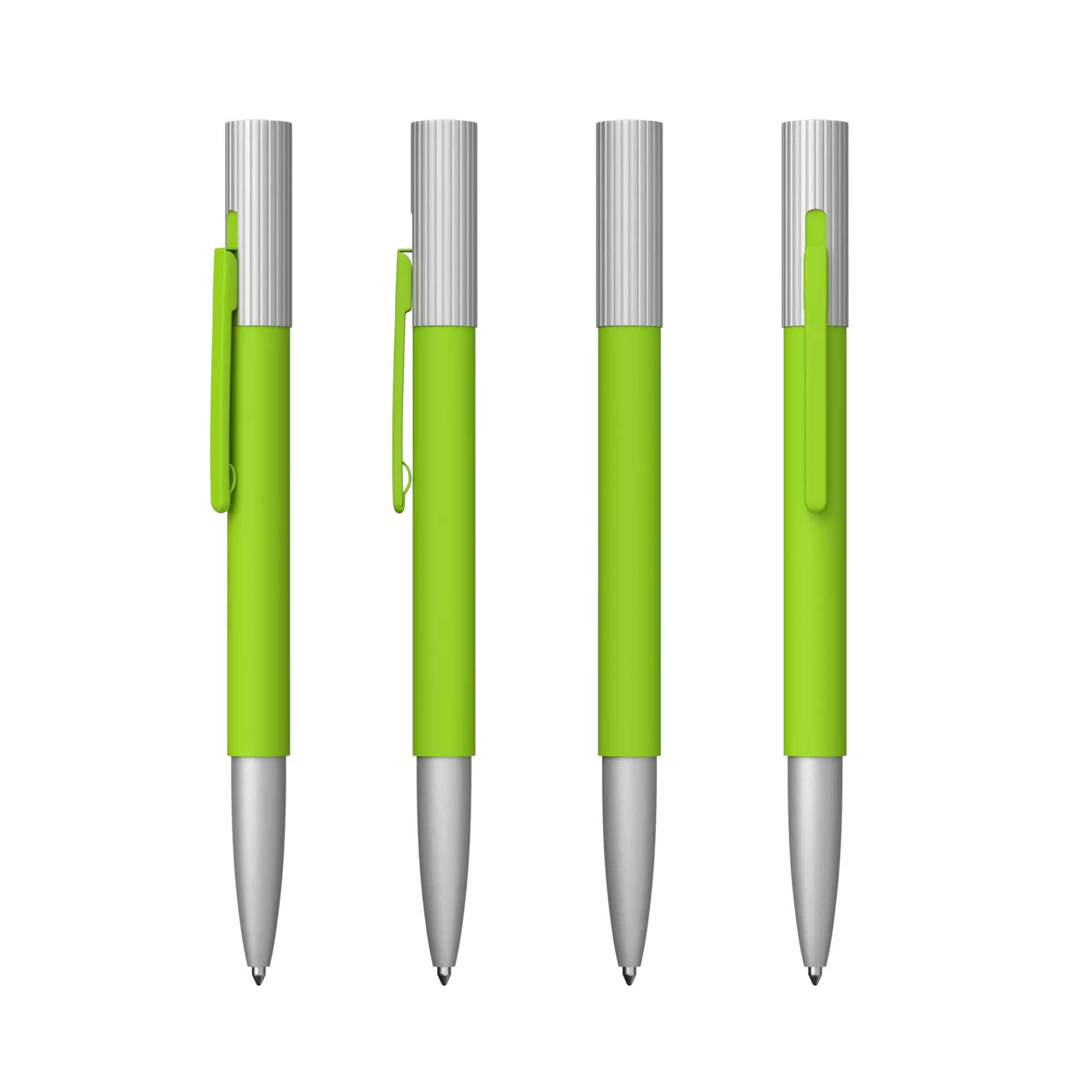 Механизм ручки: нажимной. Корпус ручки разбирается, стержень легко заменить. Стержень с синими чернилами.