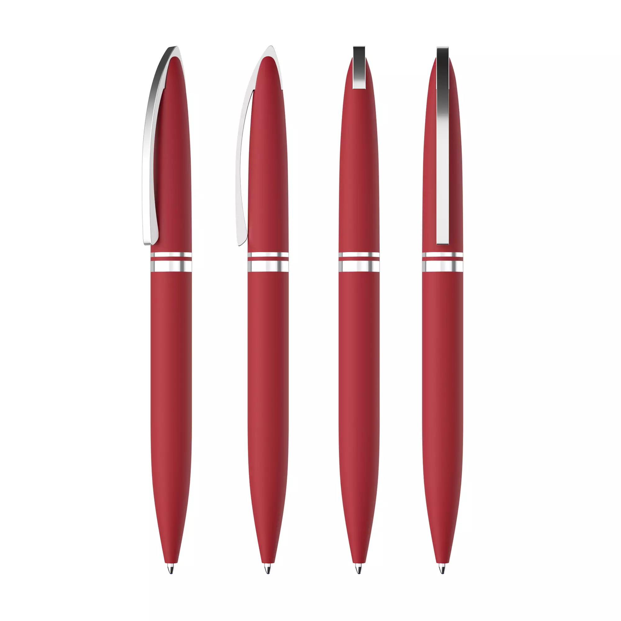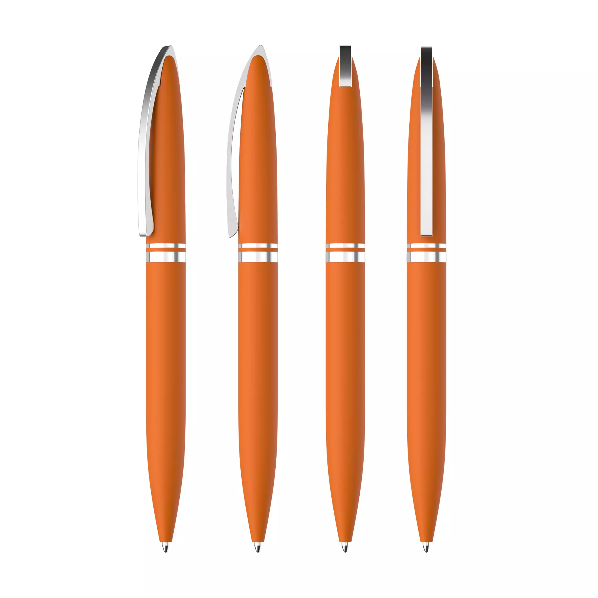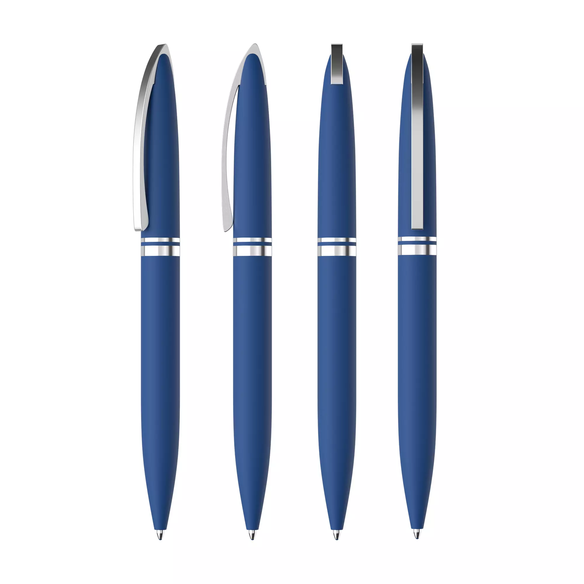 Тонкий цельнометаллический клип подпружинен и имеет ход до 5 мм для удобства зацепления. Деловой имидж ручки подчеркивает солидный вес - 34 г. Матовое прорезиненное покрытие хорошо сочетается с блестящими хромированными элементами. Механизм: поворотный. Стержень с синими чернилами. Корпус ручки разбирается, стержень легко заменить. Рекомендована зеркальная гравировка газовым CO-лазером.